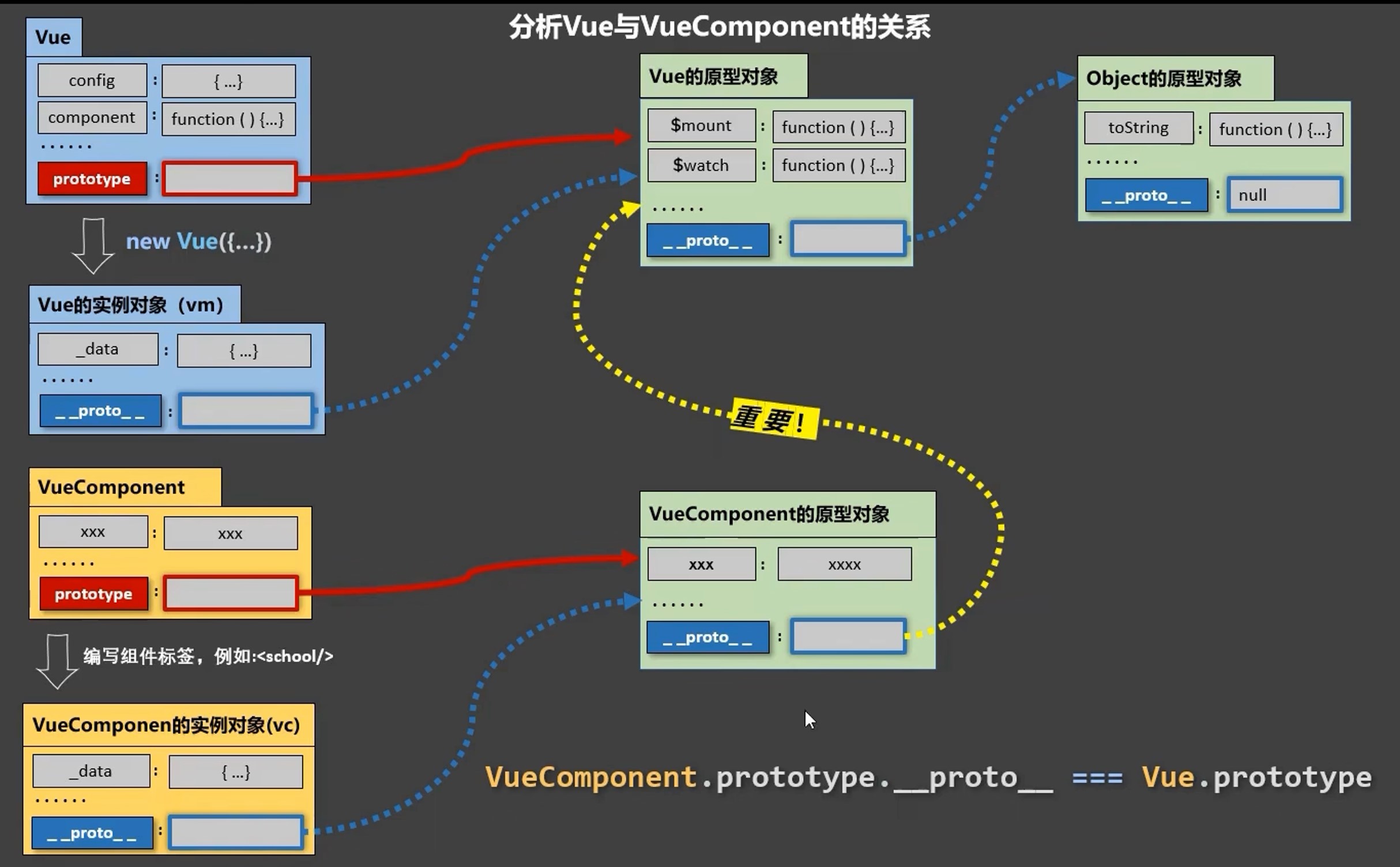 2、为什么要有这个关系:让组件实例对象(vc)可以访问到Vue原型上的属性、方法